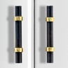 Set de 2 puxadores compridos em preto e dourado.